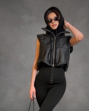 Smanicato imbottito in ecopelle dal design moderno e grintoso. Dotato di zip frontale e cappuccio per un look urban e super versatile. Morbido, caldo e perfetto per completare outfit street-style e casual.