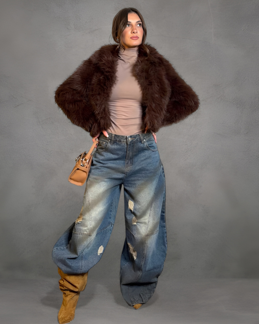 Jeans a gamba larga con cuciture a contrasto e dettagli grafici sulla parte posteriore e sulle gambe. Il design strutturato valorizza la silhouette e dona un tocco urban al look. Versatili e comodi, perfetti da abbinare sia a crop top che a maglioni oversize.