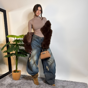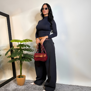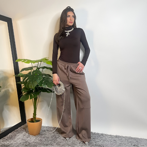 Maglia elasticizzata dal taglio aderente con collo alto, morbida e confortevole. Taglia unica, veste perfettamente dalla S alla L, ideale per un look versatile e raffinato in ogni stagione.